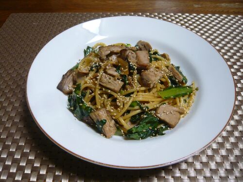 ご訪問ありがとうございます。 今回は残りもの〜食べきれずに冷凍していた“かつおのたたき”をオイル煮にして作った『自家製ツナ』をテーマにお送りしています。第4回は和風パスタです。 ★自家製ツナと春菊の和風スパゲッティ 材料(少なめ1人分) 下準備 …