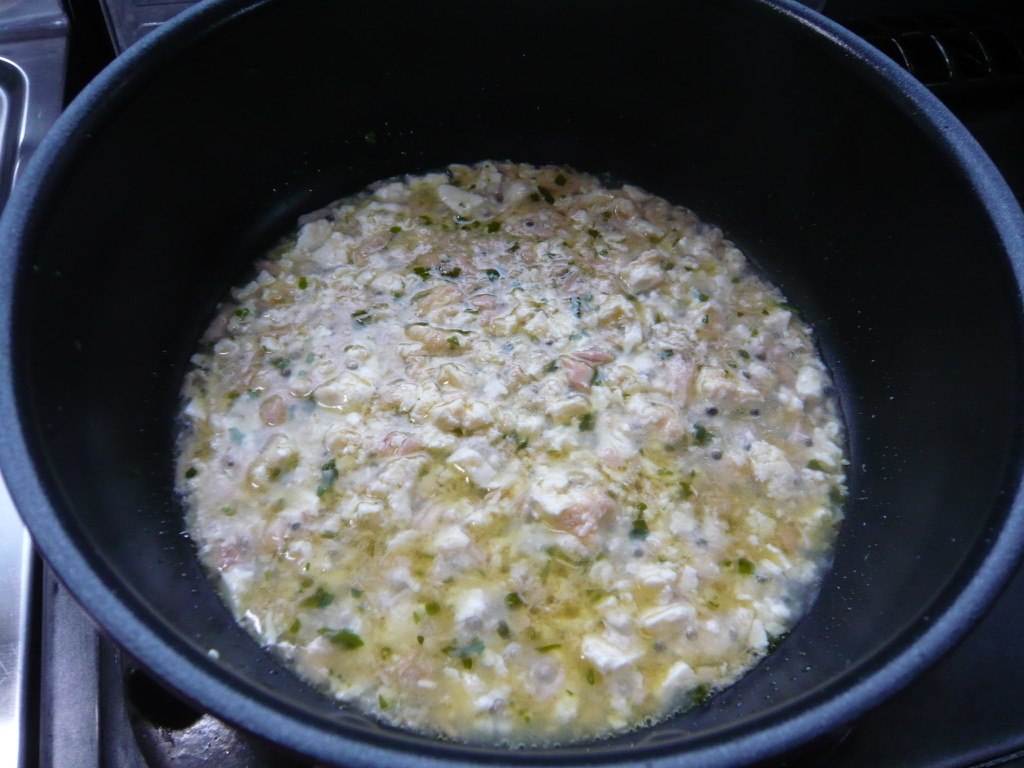 味をみて足りなければ塩を加えて調整し、火を止めてオリーブオイル少々加えてザッと混ぜ、