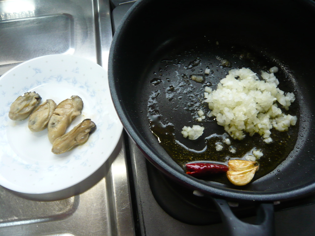 そんなことから当然のように購入するのは“生食用”の牡蠣。生食用の牡蠣が安い時があって、これでパスタに使ってみようじゃありませんか!と購入し、上機嫌で帰宅。下処理をしながら1個摘み食い。あぁ美味しい♪2個目に手が出そうになるのをこらえるのが大変です笑。