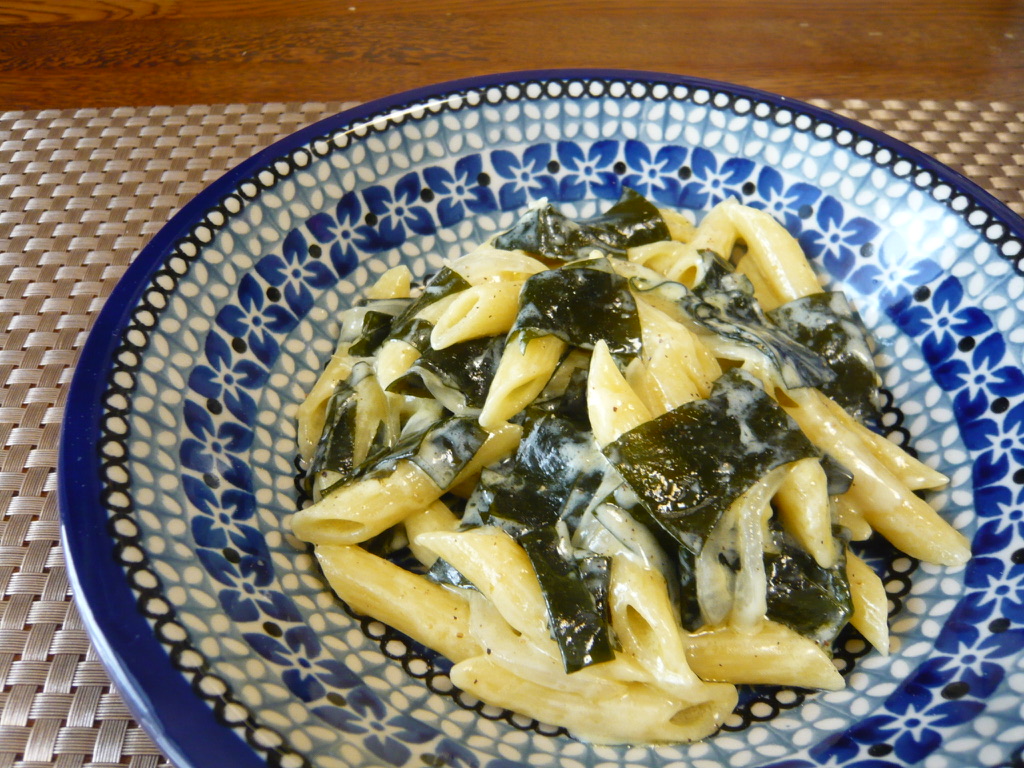 材料が少なかったせいかクリームソースのパスタにしては手間がかからず、あっという間に出来上がりました。簡単ながらも風味豊かな『生わかめ』を堪能できるひと皿、予想以上の美味しさに思わずニヤニヤしながら、たいへん美味しくいただきました。