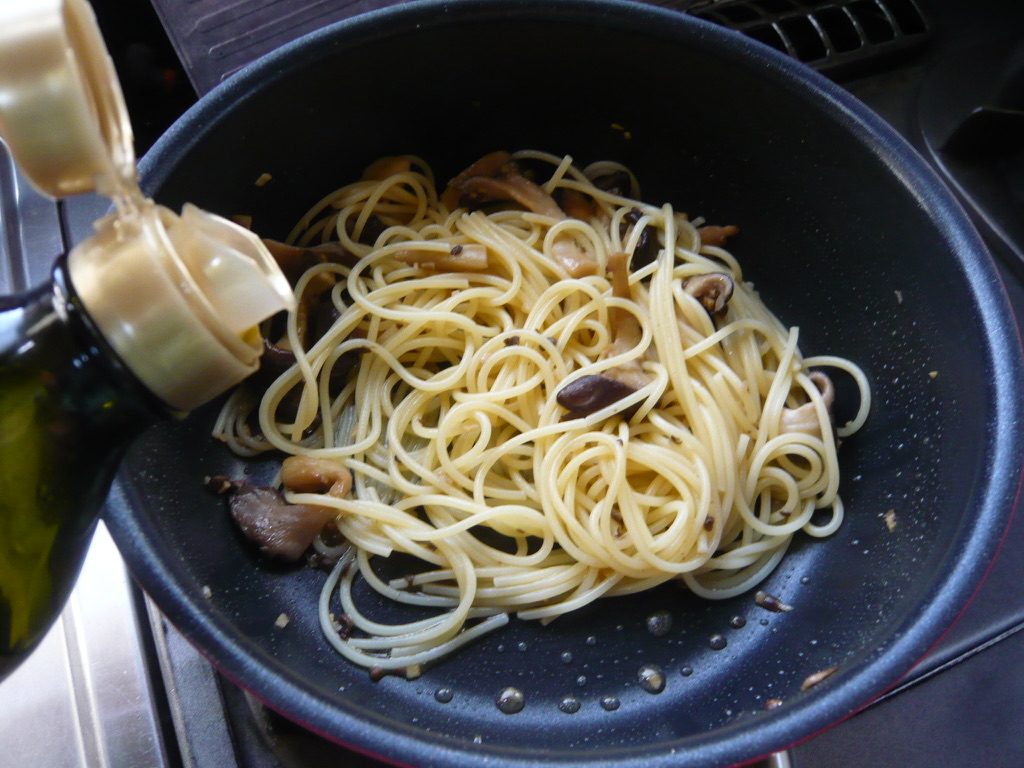 火を止めてオリーブオイル少々まわしかけてザッと混ぜ、