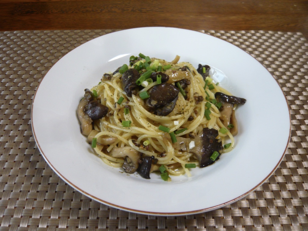 ★霜降りひらたけの山椒風味和風スパゲッティ