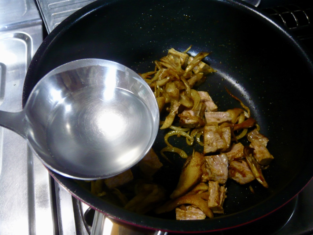 カレー粉を入れて炒める。