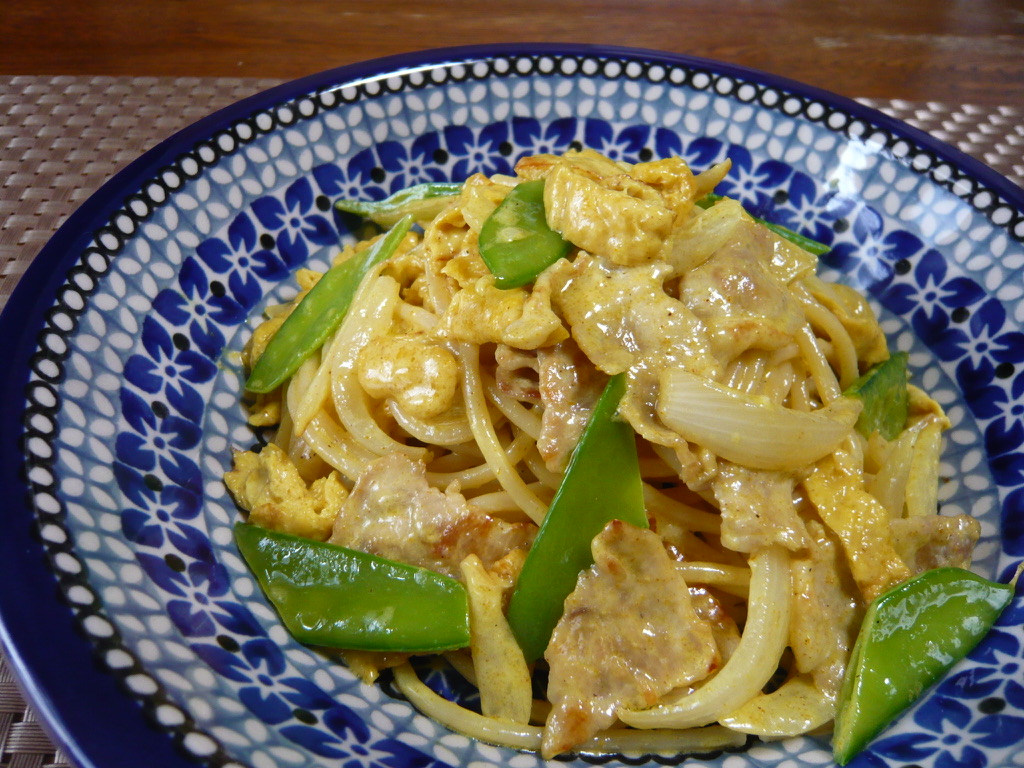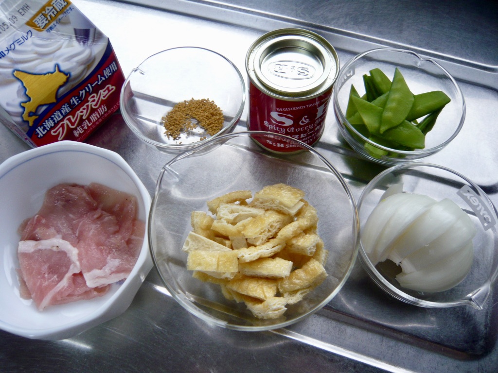 ★油揚げと新たまねぎのカレークリームスパゲッティ